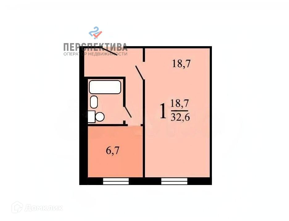 Общая площадь 32.6 м2