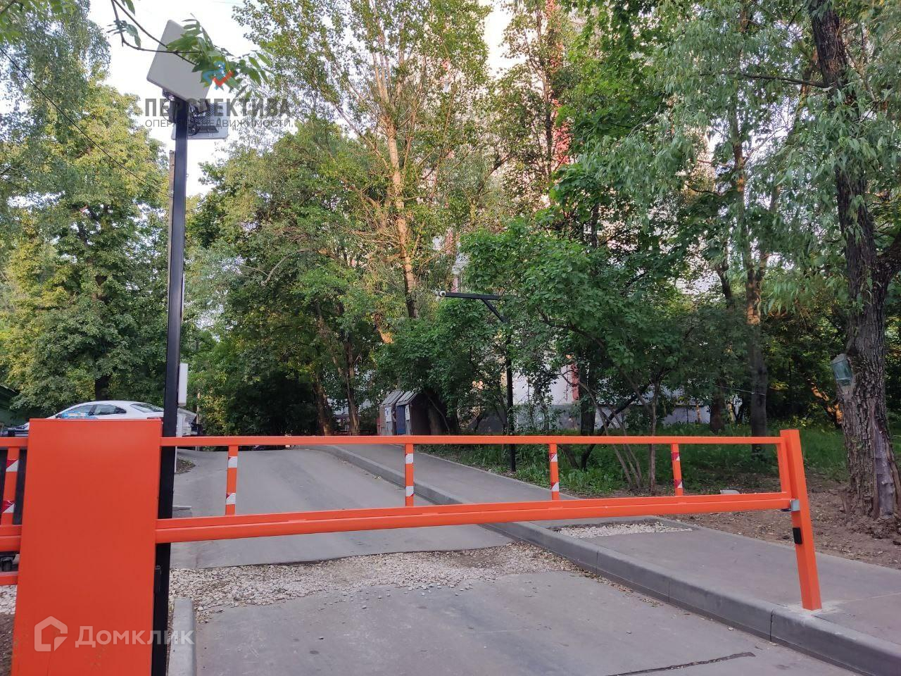 - двор огорожен шлагбаумом;