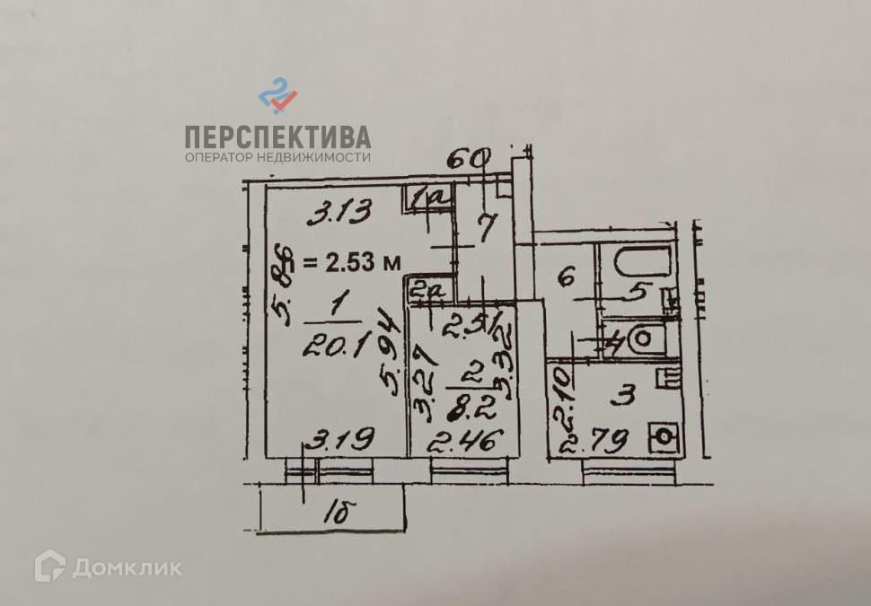 Жилая площадь 28.3 м2