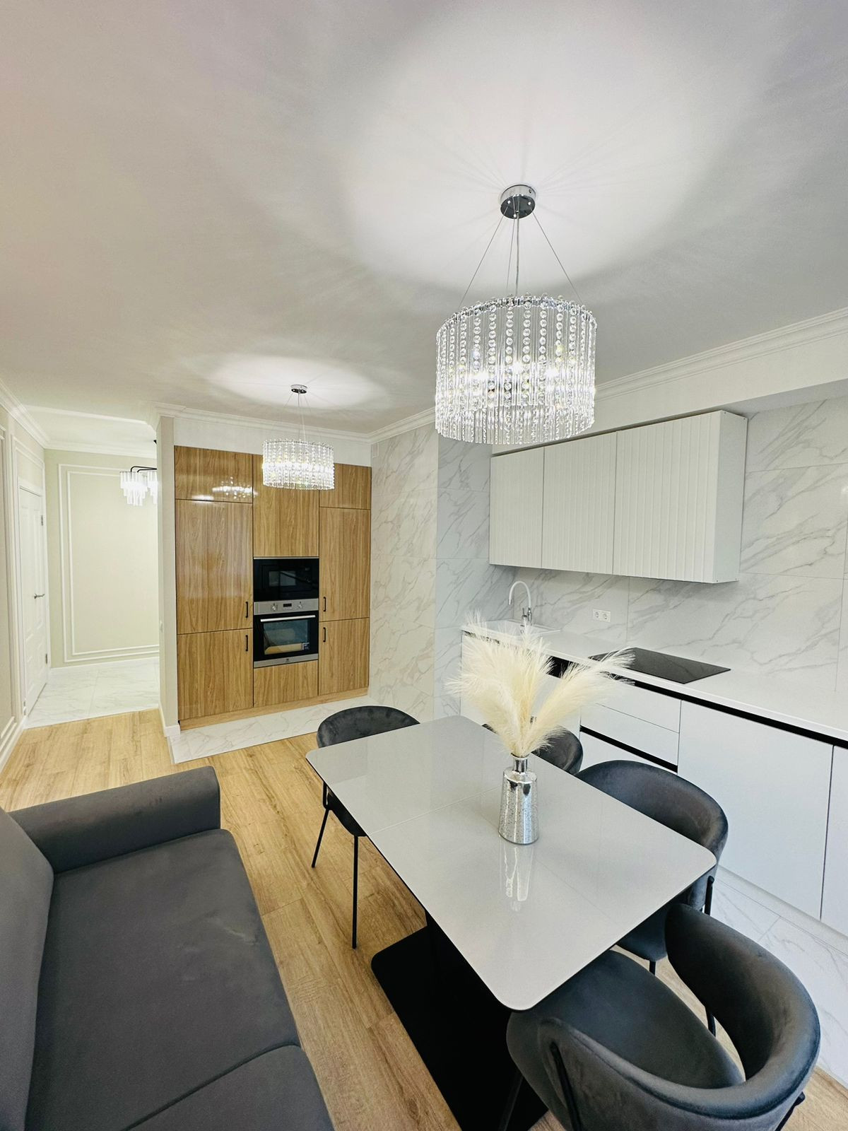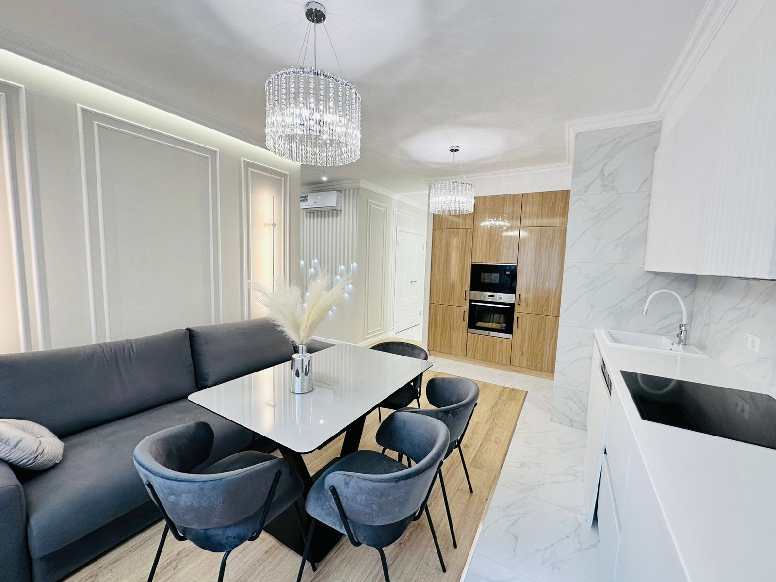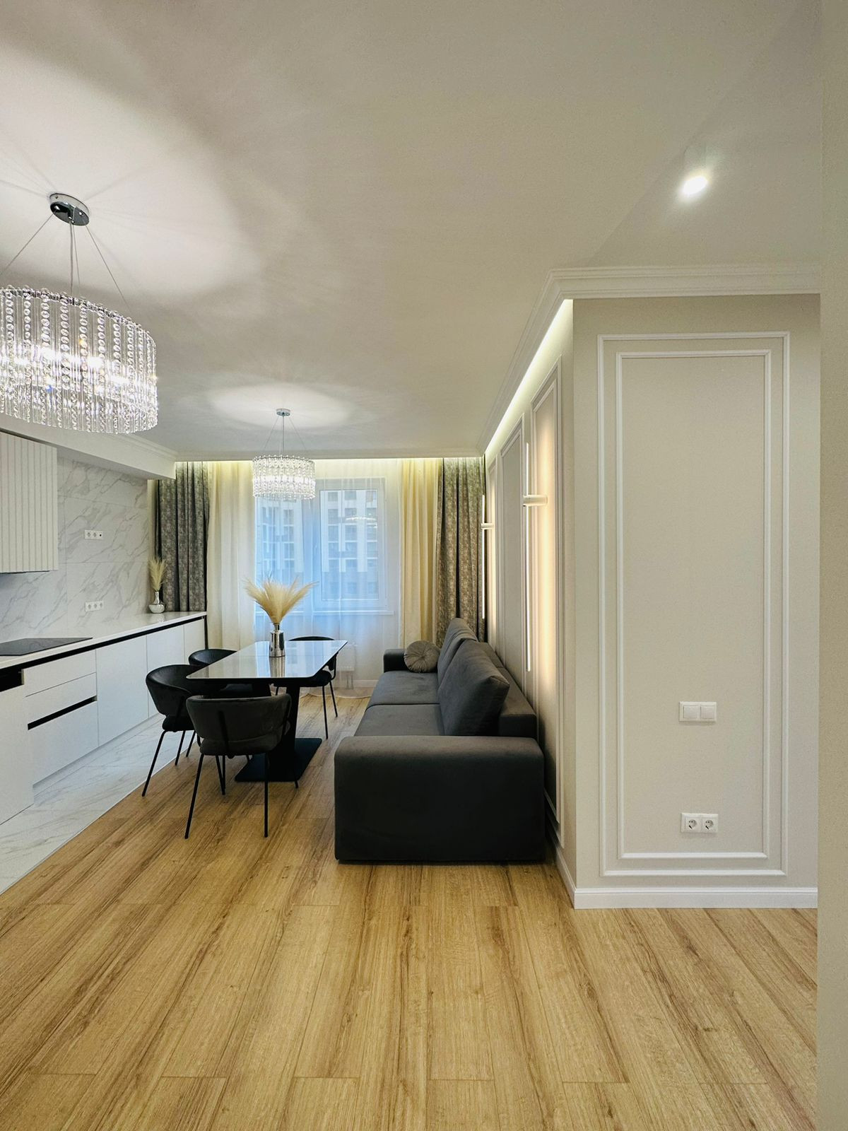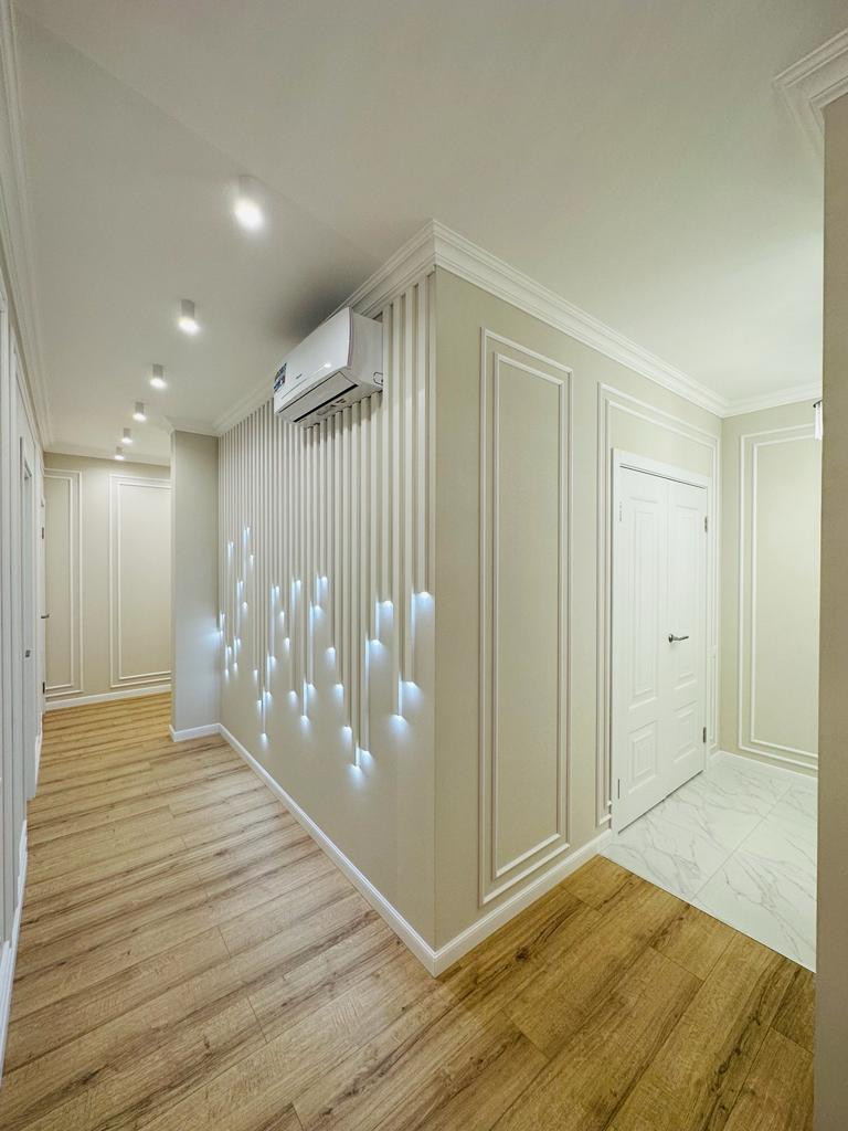К продаже представлена новая, стильная 3-комн. квартира общей площадью 82 м² в ЖК Настроение. Квартира с дизайнерским ремонтом. Абсолютно новая мебель, кухонный гарнитур со встроенной техникой и предметы интерьера входят в стоимость, установлены 2 кондиционера. Функциональное планировочное решение: прихожая с большой гардеробной, просторная кухня-гостиная с выделенной нишей под TВ, спальня с мягким изголовьем кровати + гардеробная, 2 отдельные детские комнаты с возможностью размещения рабочей/учебной или игровой зоны (либо кабинет), санузел с ванной, балкон,