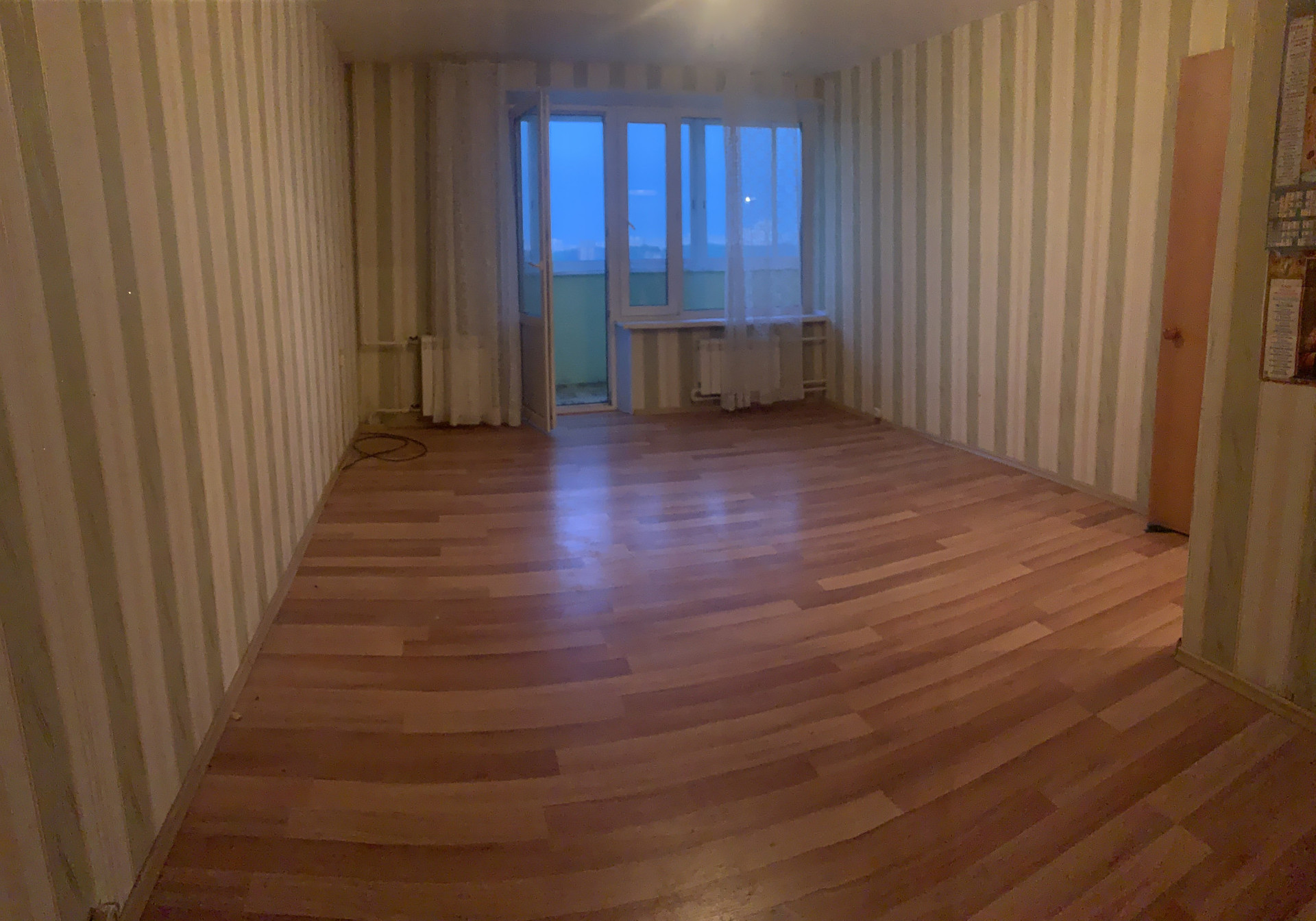 Огромная лоджия из которой можно сделать рабочий кабинет или зону для отдыха.
