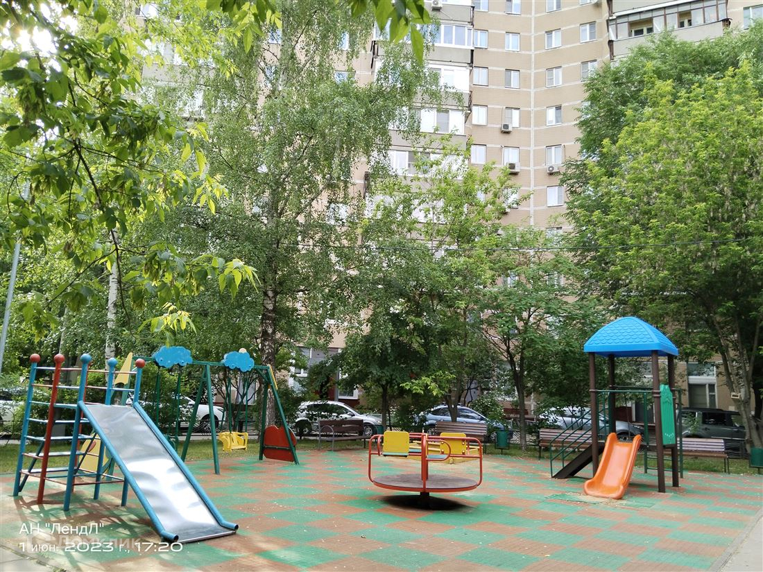 Дом огорожен шлагбаумом с двух сторон, во дворе имеется детская площадка и тренажеры для взрослых, скамейки для отдыха и для машин есть парковочные места.