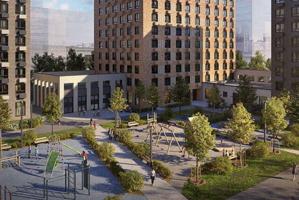 На территории запланировано строительство 2-х школ (на 500 и 600 мест) и 3 детских сада. Благоустроенная территория с детскими площадками, прудом, зоной отдыха и озеленением. Дворы без машин.