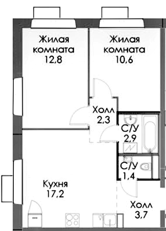 Общая площадь 50.9 м2