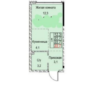 Общая площадь 22.7 м2