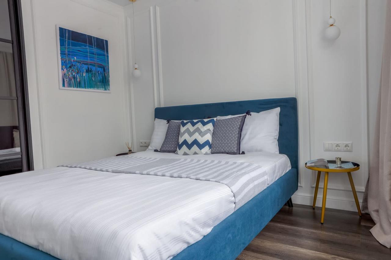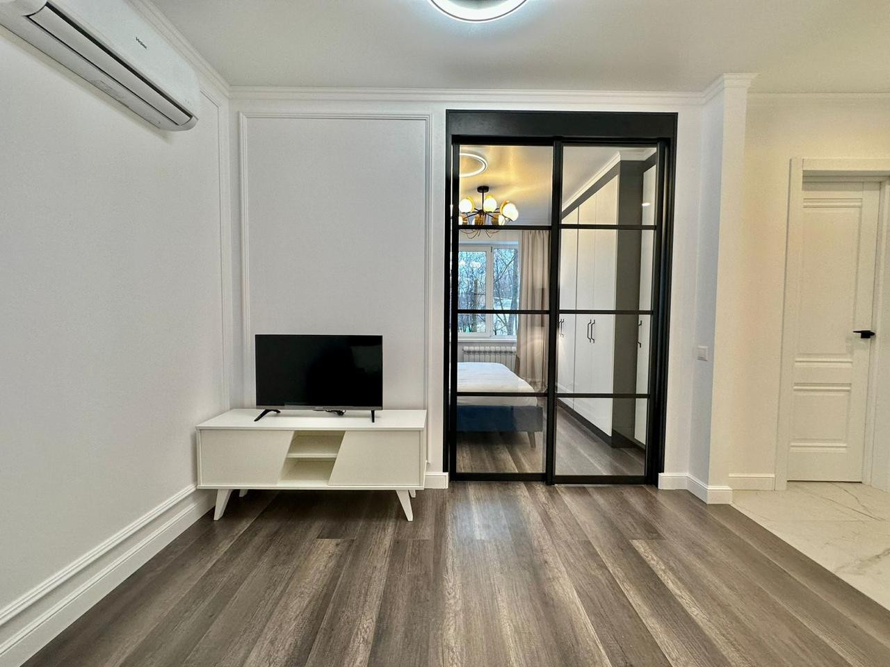 Евродвушка с дизайнерским ремонтом. Квартира Разделена на 3 зоны: отдельная спальня с закрывающейся перегородкой, гостиная с кондиционером и раскладным диваном на 2 человека и отдельная встроенная кухня с новой техникой ( посудомоечная машина, стиральная  машина  с сушкой, духовка с грилем, варочная панель с электро поджигом, вытяжка с фильтром).