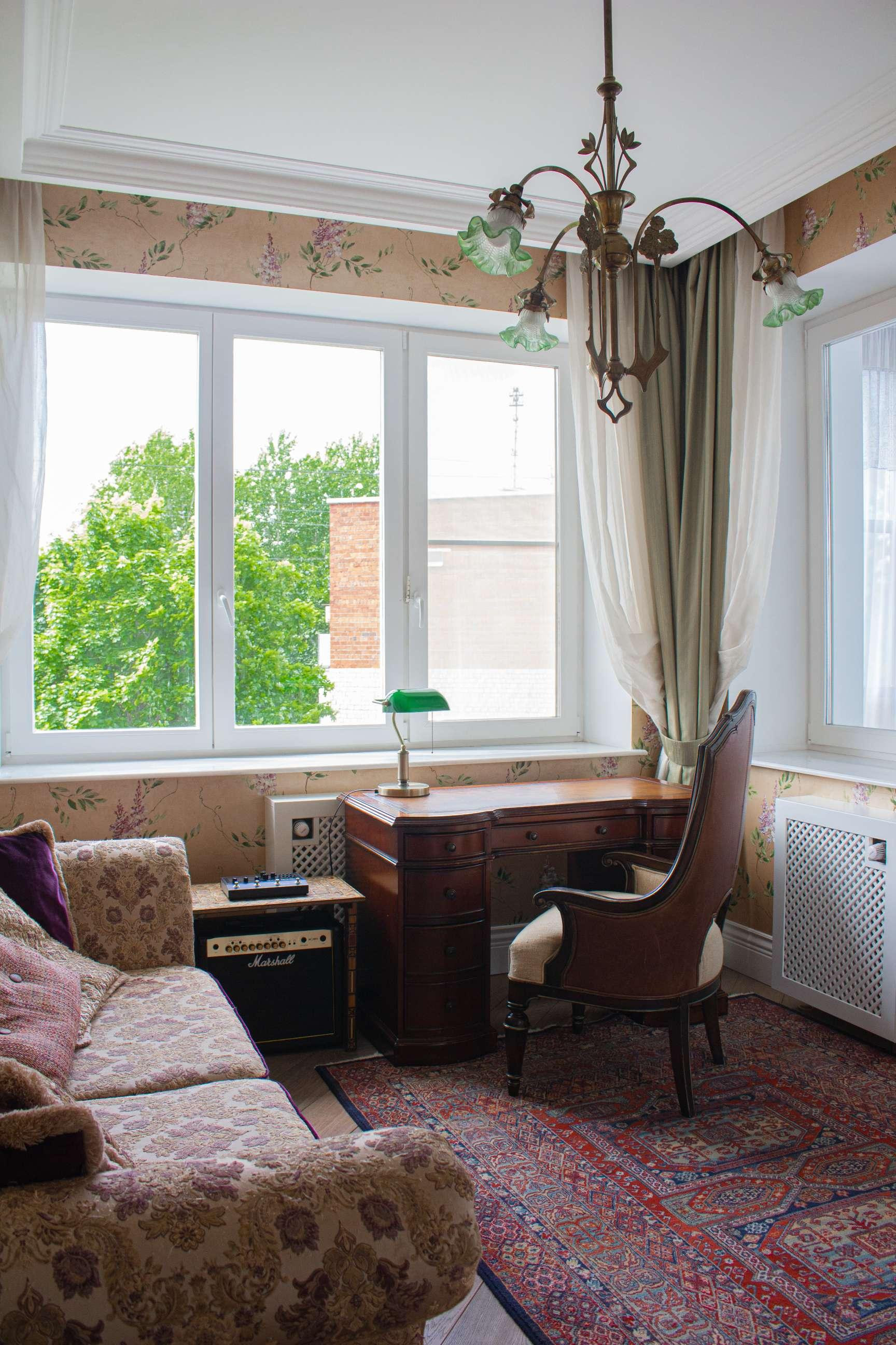 Квартира наполнена светом и воздухом, потолки 3 метра, из окон открывается прекрасный вид на утопающий в зелени музей-заповедник Коломенское.