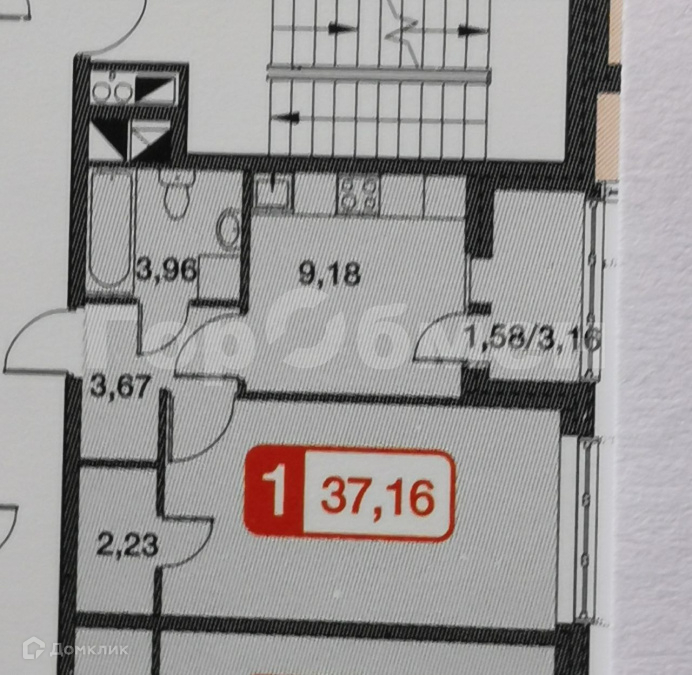 Общая площадь 37.8 м2
