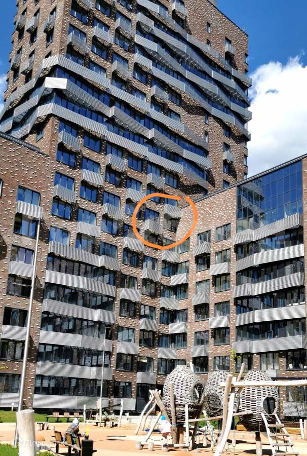 Окна во двор,  4-я угловая секция. Нет эффекта окно-в-окно, т.к. наши окна выше, чем смежная секция.