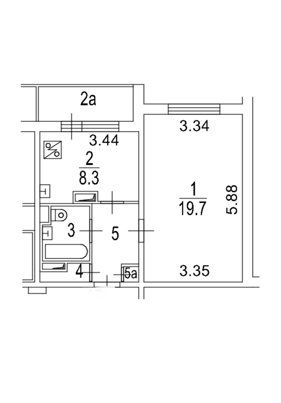 Жилая площадь 19.7 м2