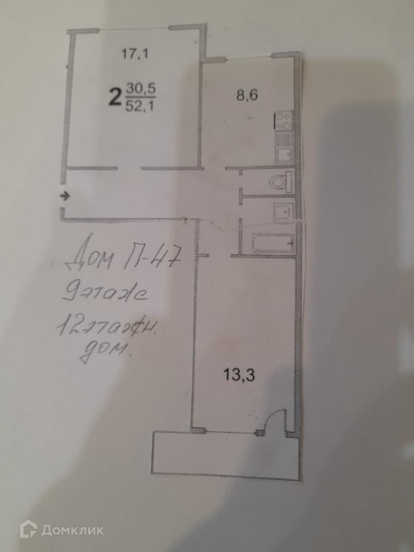 Общая площадь 52.1 м2