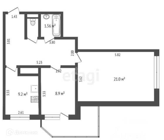 Общая площадь 55.4 м2