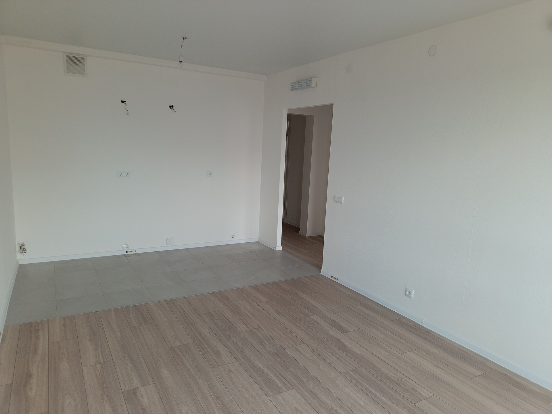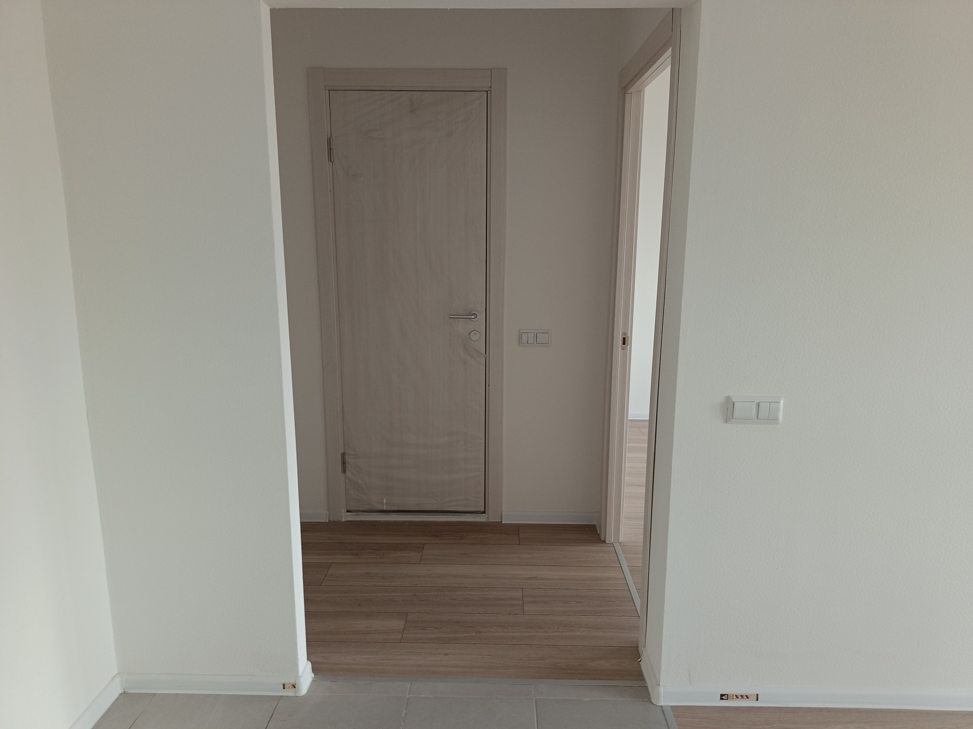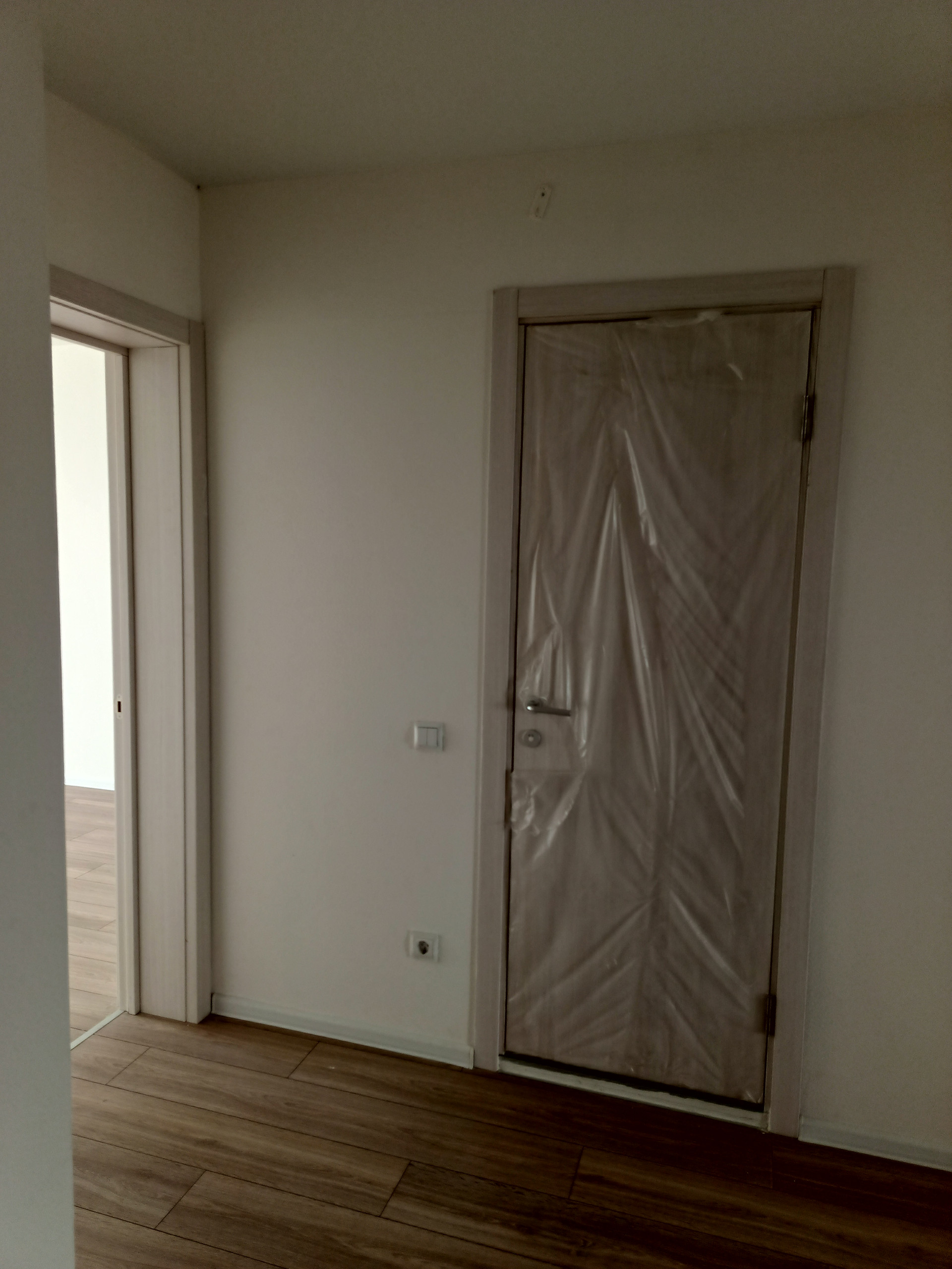 В квартире удобная планировка; кухня-гостиная, две изолированные спальни, два совмещённых санузла, просторный холл. Ремонт делался от застройщика, на полу ламинат и плитка.