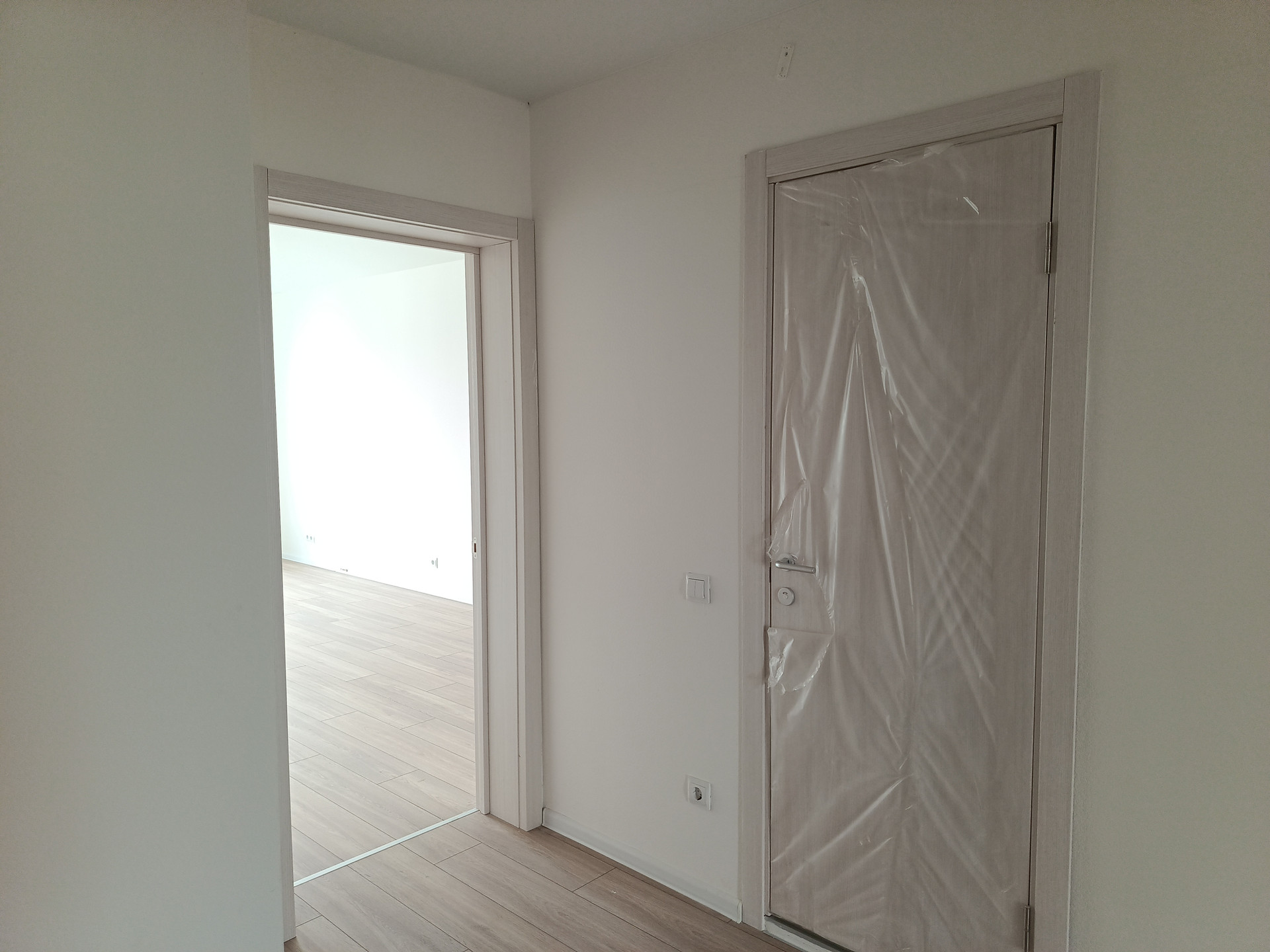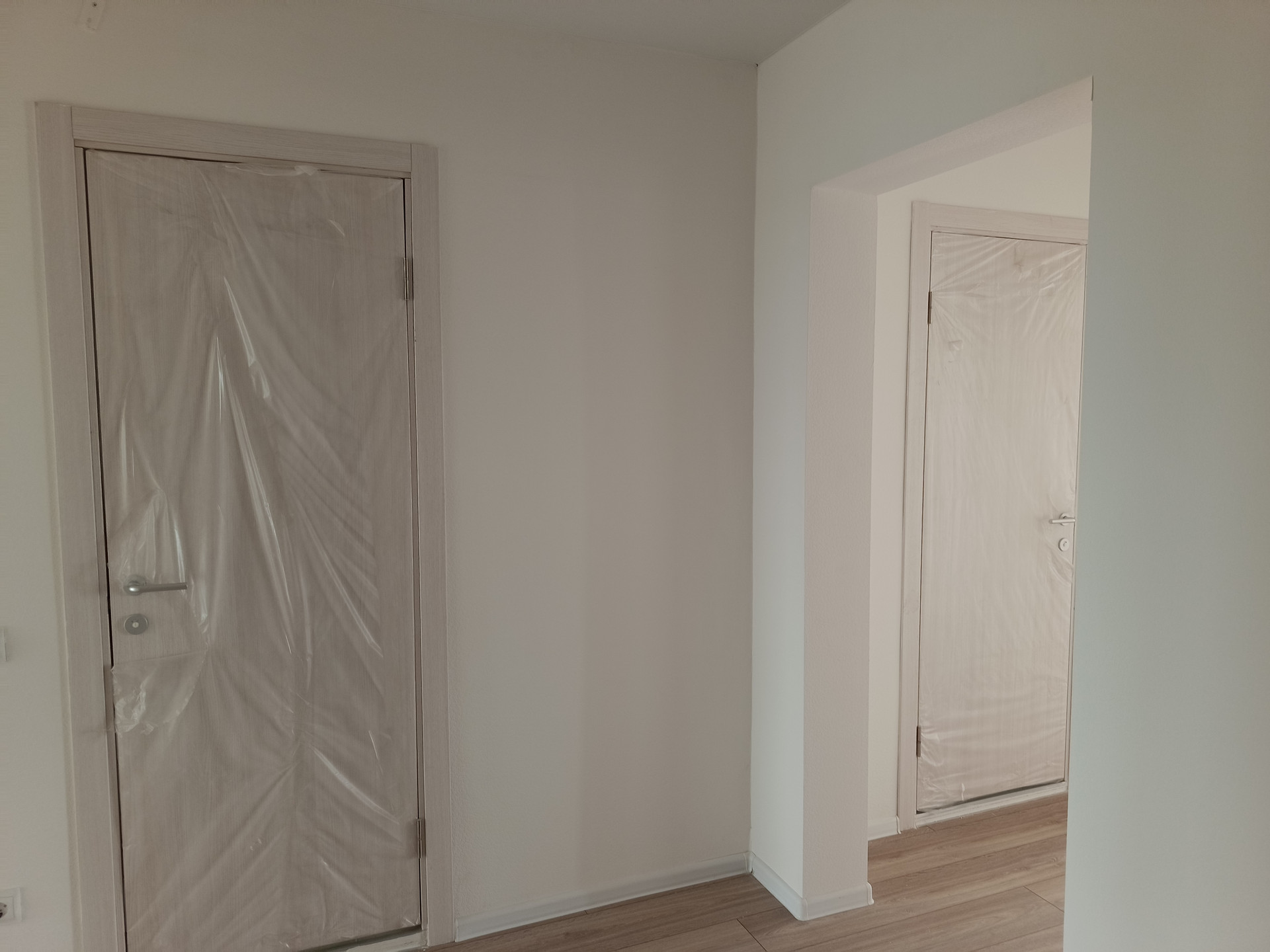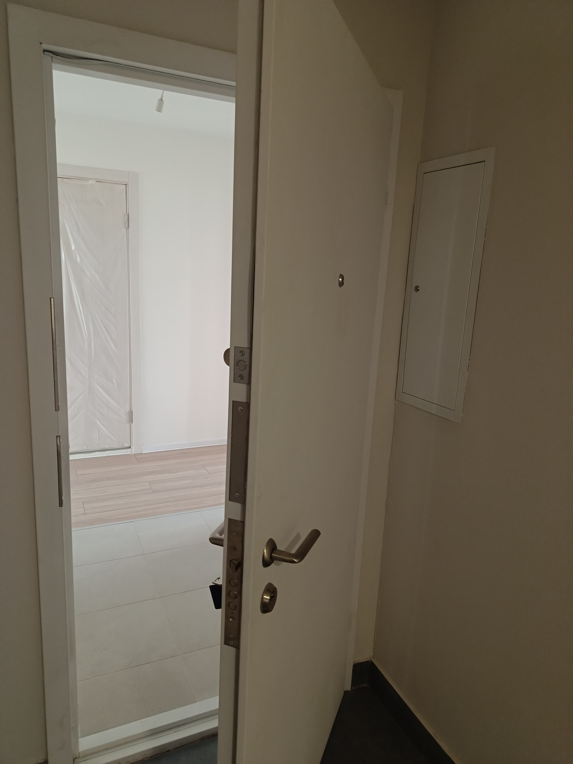 В квартире удобная планировка; кухня-гостиная, две изолированные спальни, два совмещённых санузла, просторный холл. Ремонт делался от застройщика, на полу ламинат и плитка.