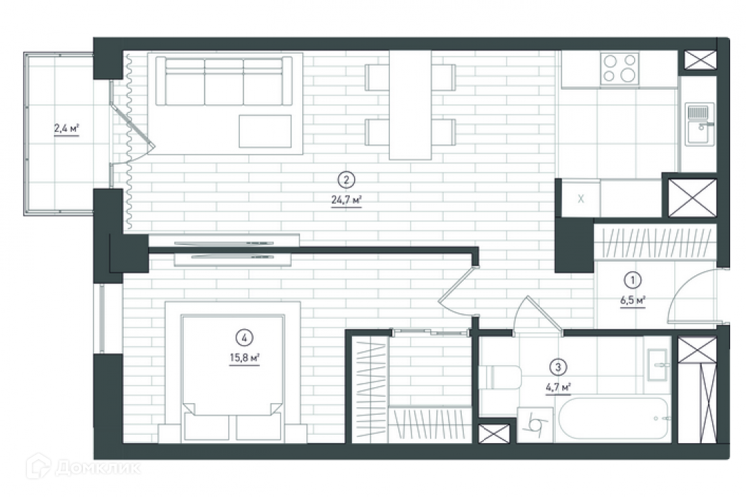 Жилая площадь 15.4 м2