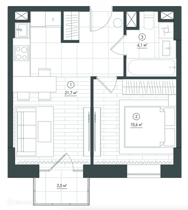 Балкон, лоджия 1 балкон
