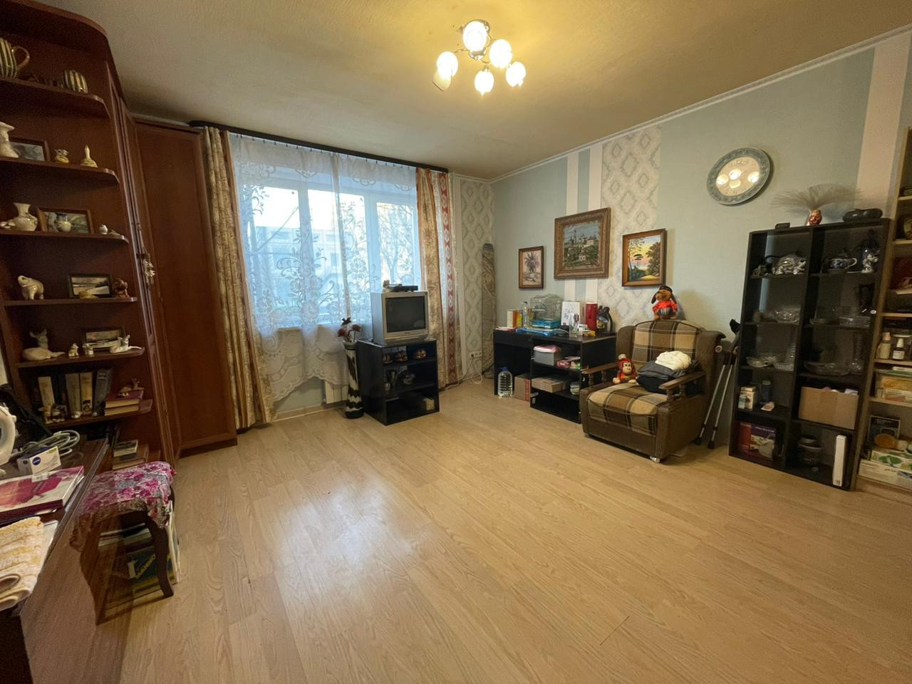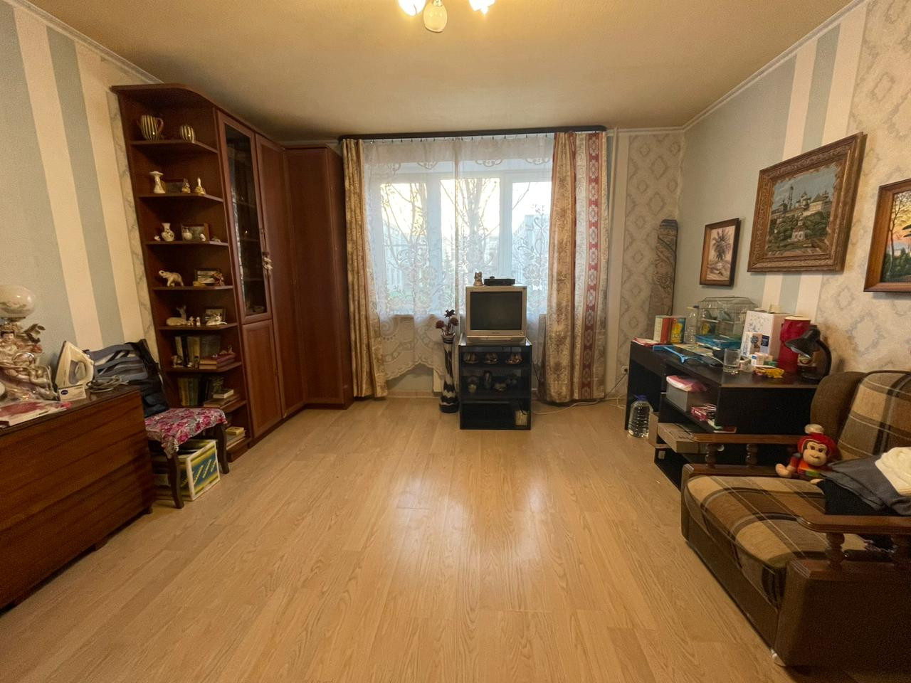 Этаж первый (высокий) более 2,5 метров до окна. Тихий, чистый двор, дорога (без шума) "далеко", метро доступно, автобусы доступно, магазины в доступе, детский сад, школа во дворе, продажа альтернативная.