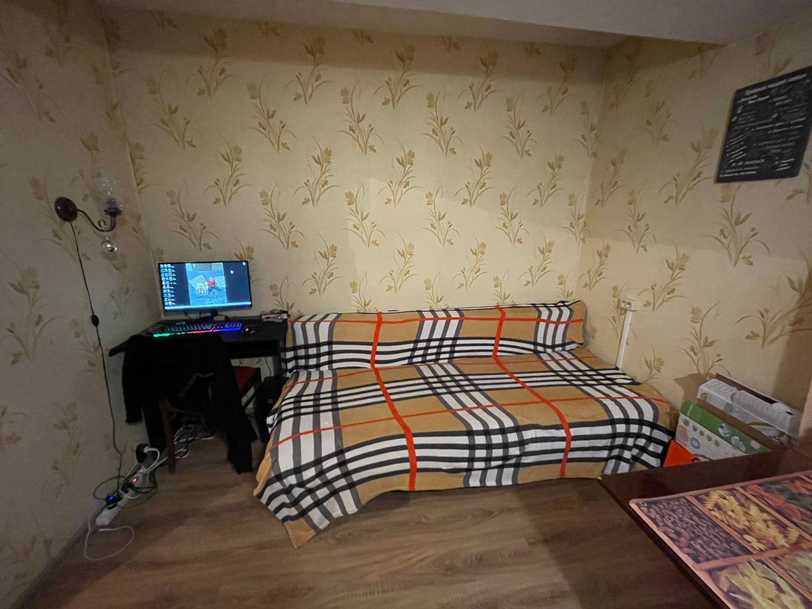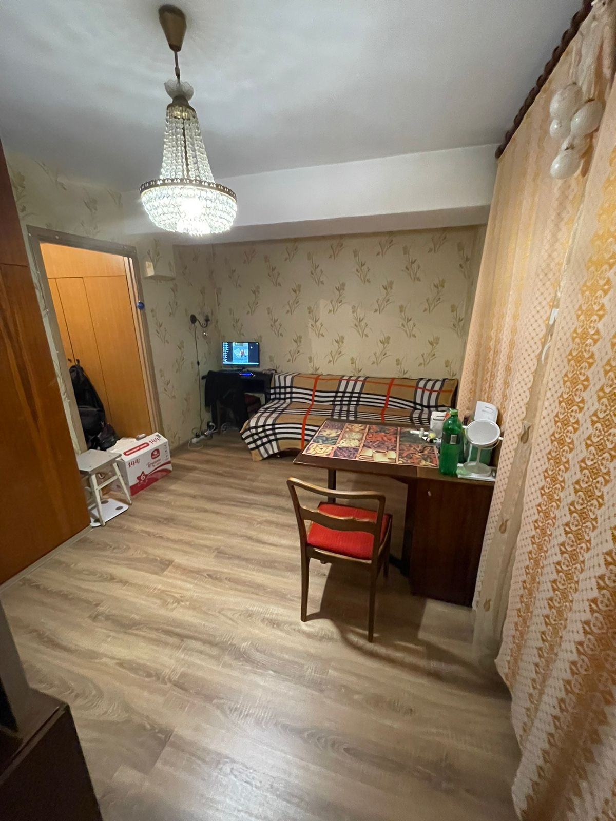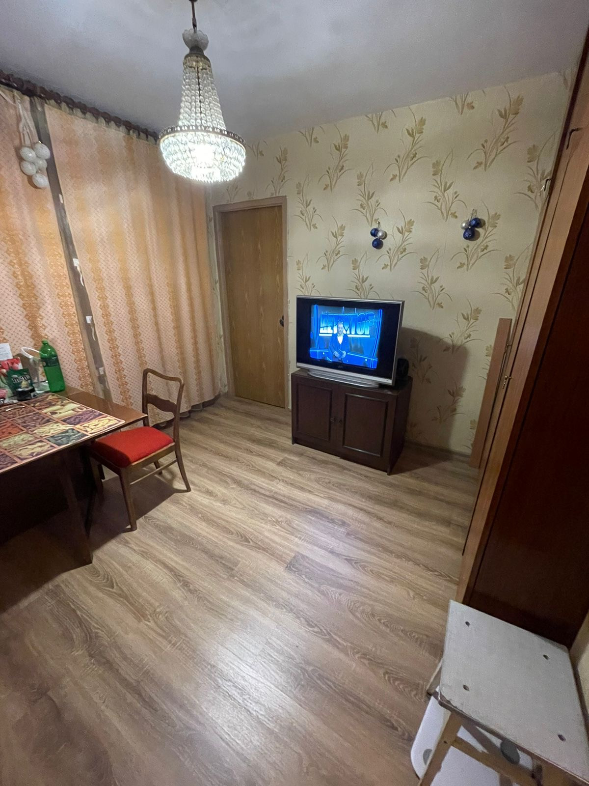 В квартире в 2 комнатах выполнен ремонт, постелен новый, хороший ламинат, есть дизайн проект кухни, в квартире есть гардеробная, просторный совместный санузел.