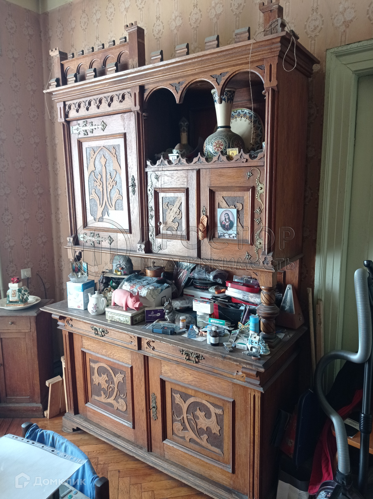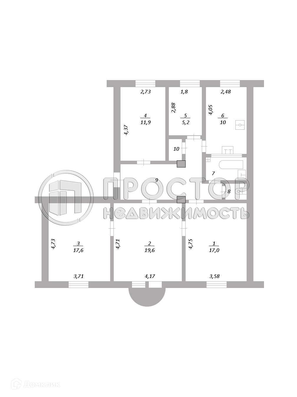 Квартира общей площадью около 100 кв.м, с потолками высотой 3,2 м с пятью комнатами, кладовой и раздельным санузлом с большой ванной комнатой находится в новой части дома с железобетонными перекрытиями.