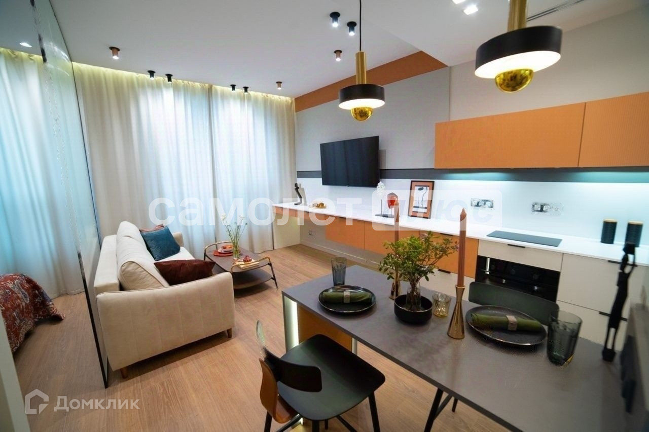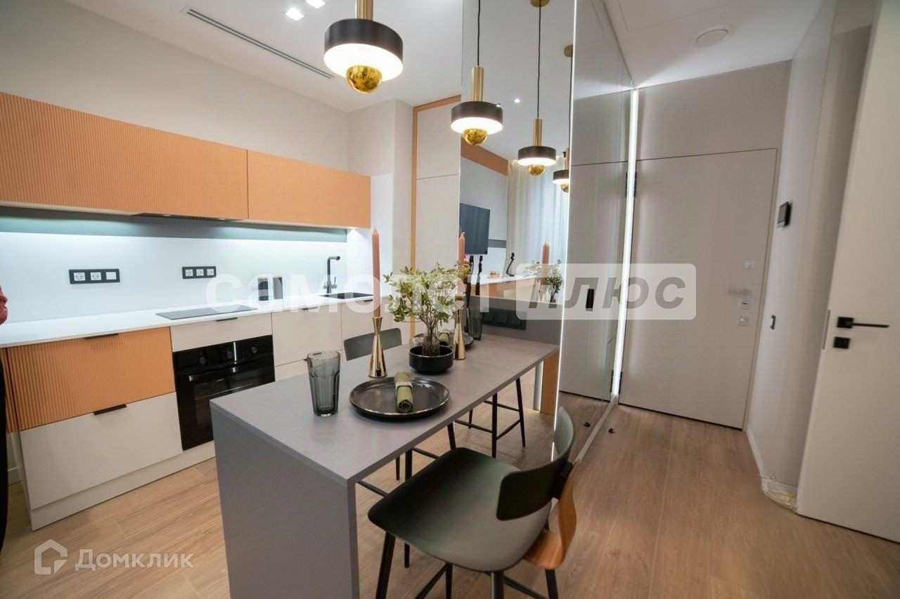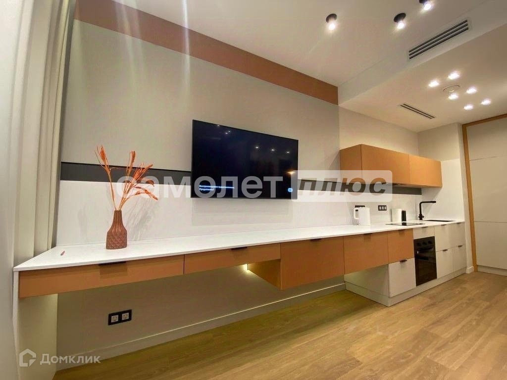 Площадь кухни составляет 18 квадратных метров. В квартире выполнен качественный и дорогой ремонт. Квартира полностью укомплектована мебелью и бытовой техникой, есть даже посуда, также в ней никто не жил! В квартире теплые полы и система климат контроля. Из окон шикарный вид!