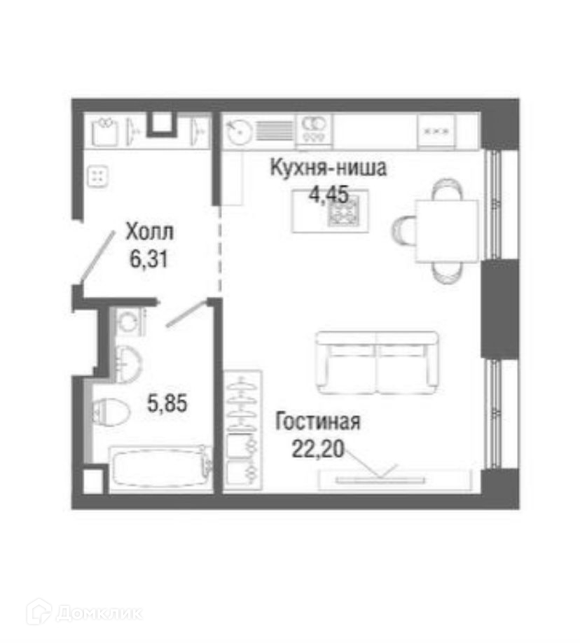 Жилая площадь 22.2 м2