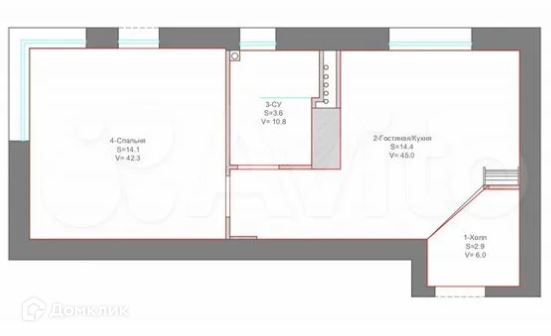 Жилая площадь 14.1 м2
