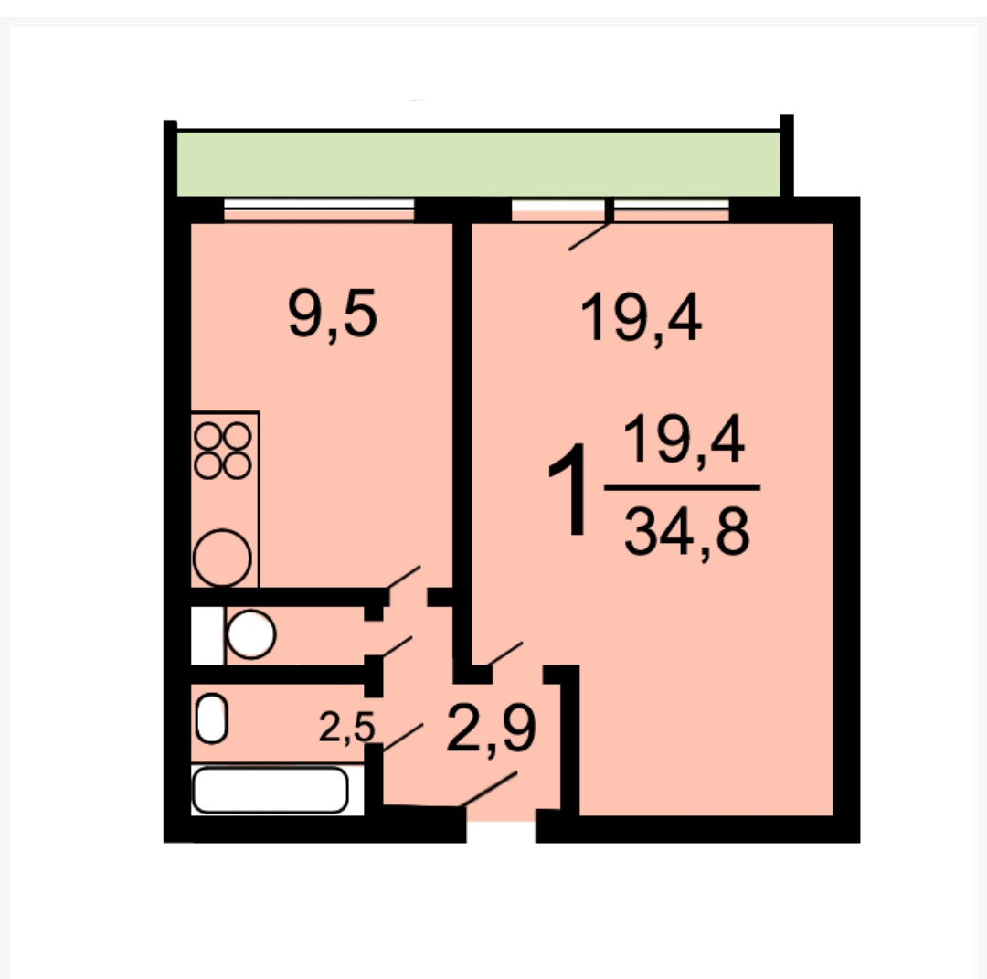 Общая площадь 35.2 м2