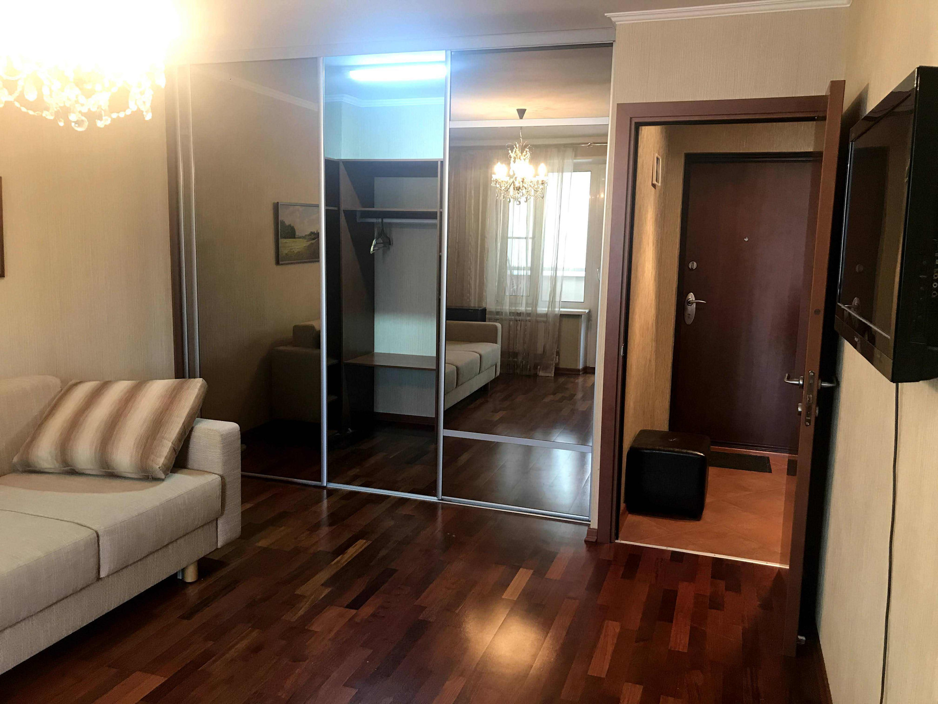 Идеальная квартира рядом с метро , 5 минут пешком . Большая гардеробная, лоджия 6 метров . Кондиционер. Совмещённый санузел .