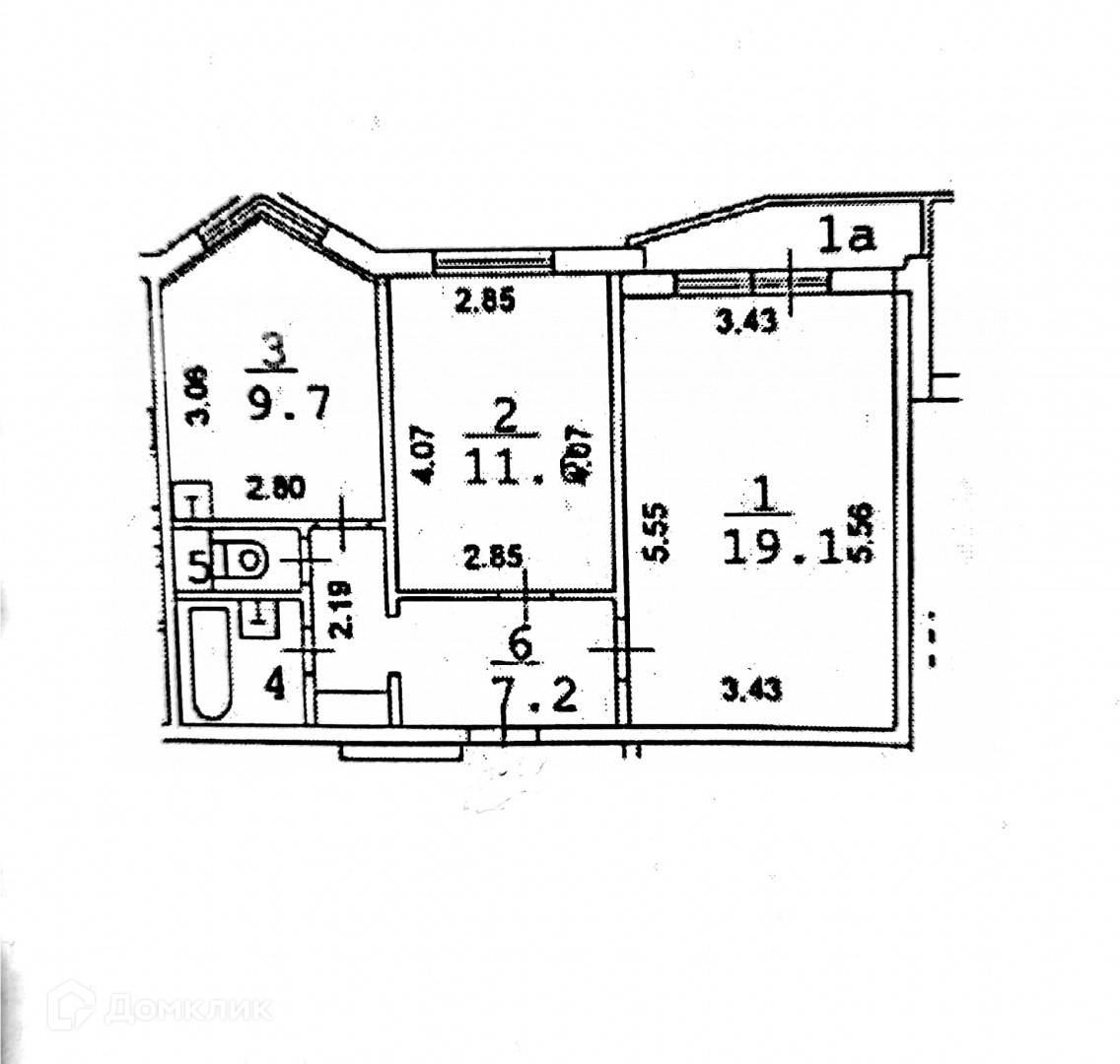 Общая площадь 52 м2