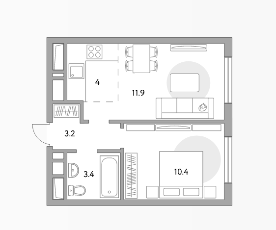 Общая площадь 33 м2