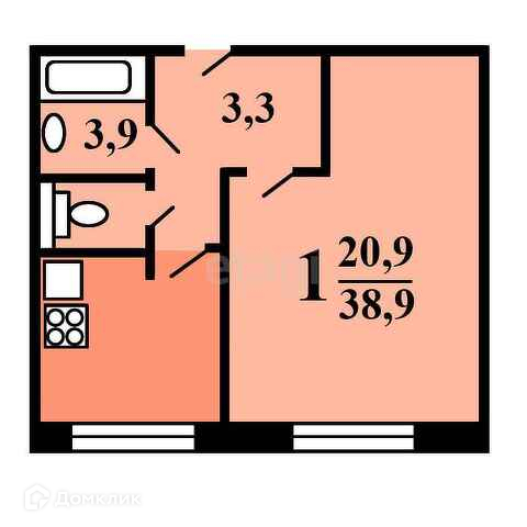 Общая площадь 38.8 м2
