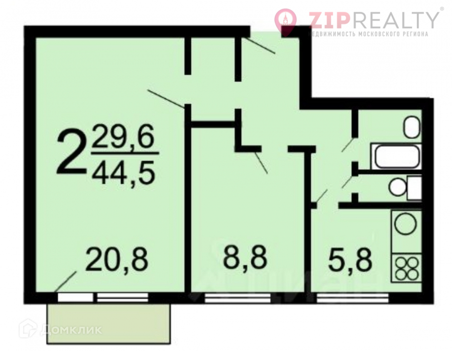 Общая площадь 44.5 м2