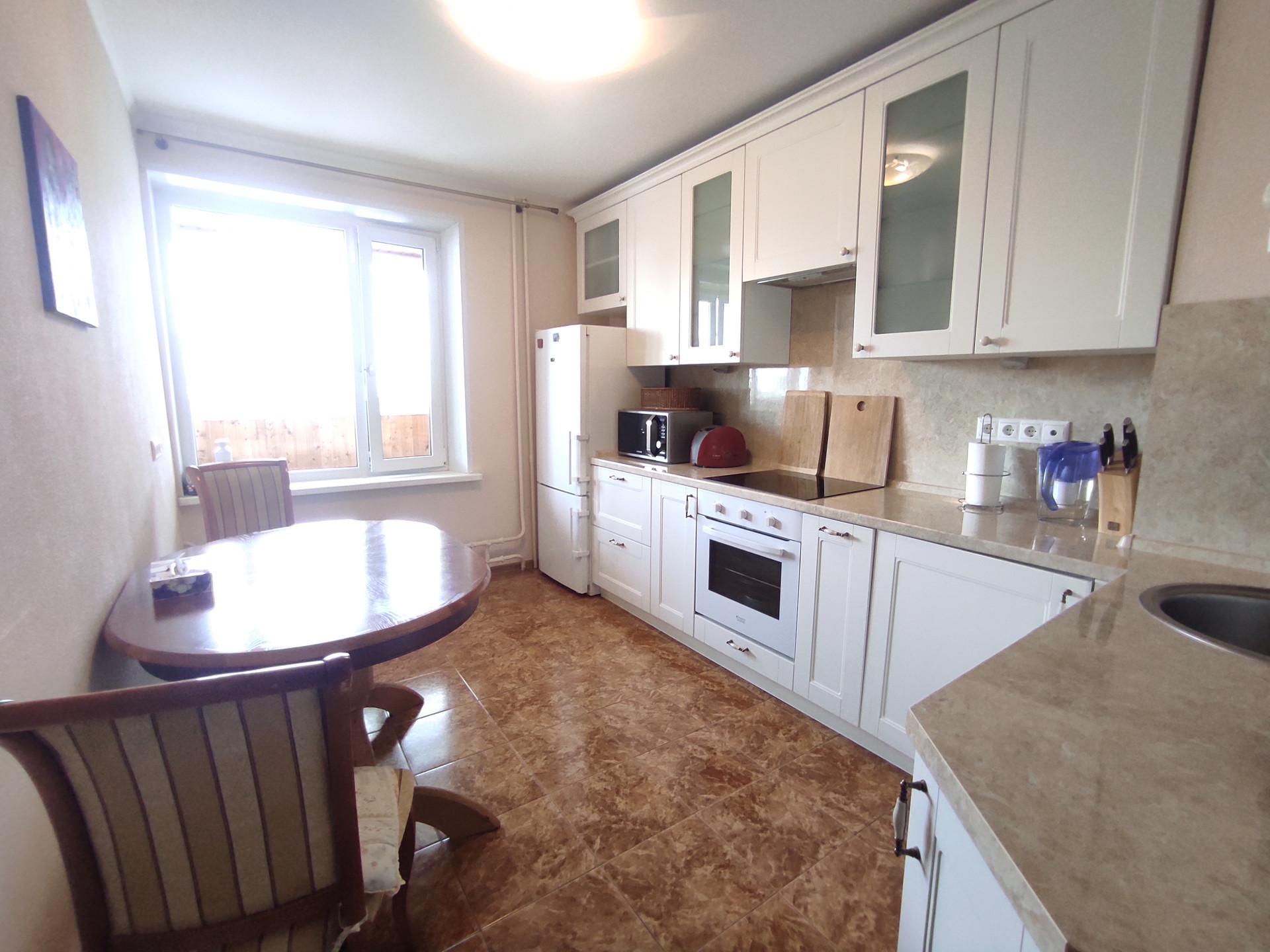 Комнаты изолированные, на разные стороны восток-запад(распашная планировка). Большая комната с выходом  просторный утепленный балконом ,остекление двухкамерное, окна REHAU.  Просторная кухня со встроенной техникой.