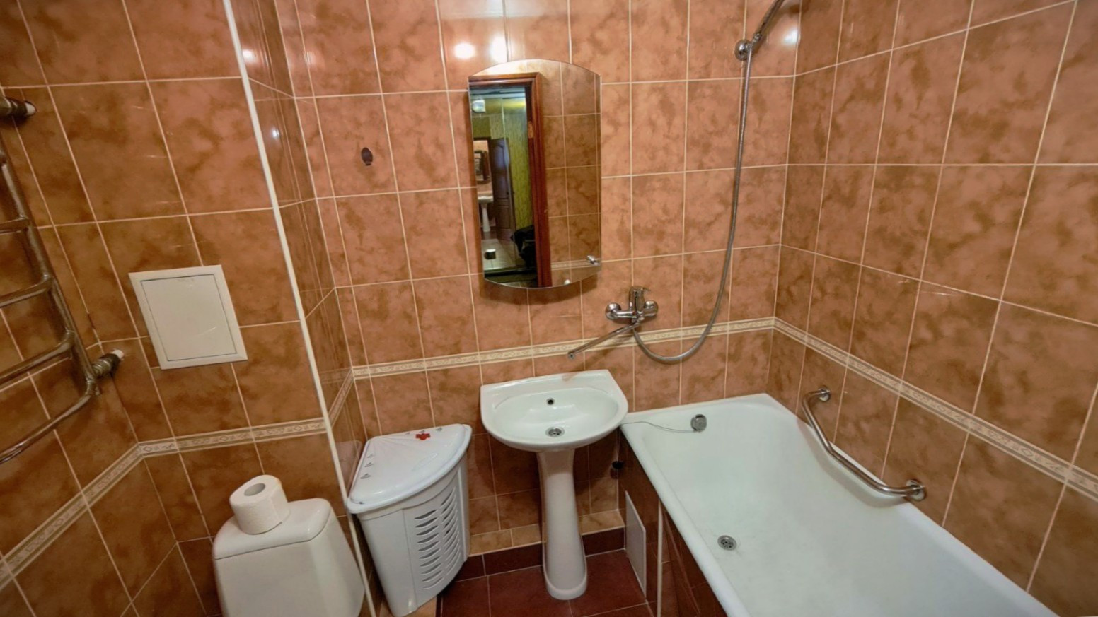 Сан. узел совмещен, установлена душевая ванная. Электрическая проводка поменяна полностью,сантехника заменена полностью , ремонт делали для себя из качественных материалов.