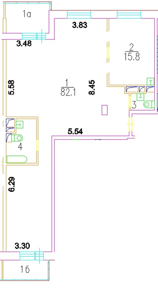 Общая площадь 105.5 м2