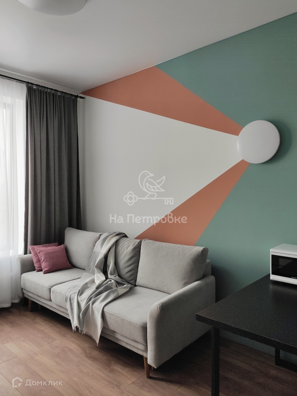 В апартаментах сделан качественный ремонт. Апартаменты полностью укомплектованы мебелью и бытовой техникой. На первом этаже расположены лобби с библиотекой, лаунж-зона. Круглосуточно работает консьерж.