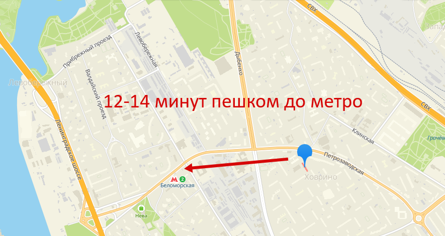 12-15 минут пешком до м Беломорская.