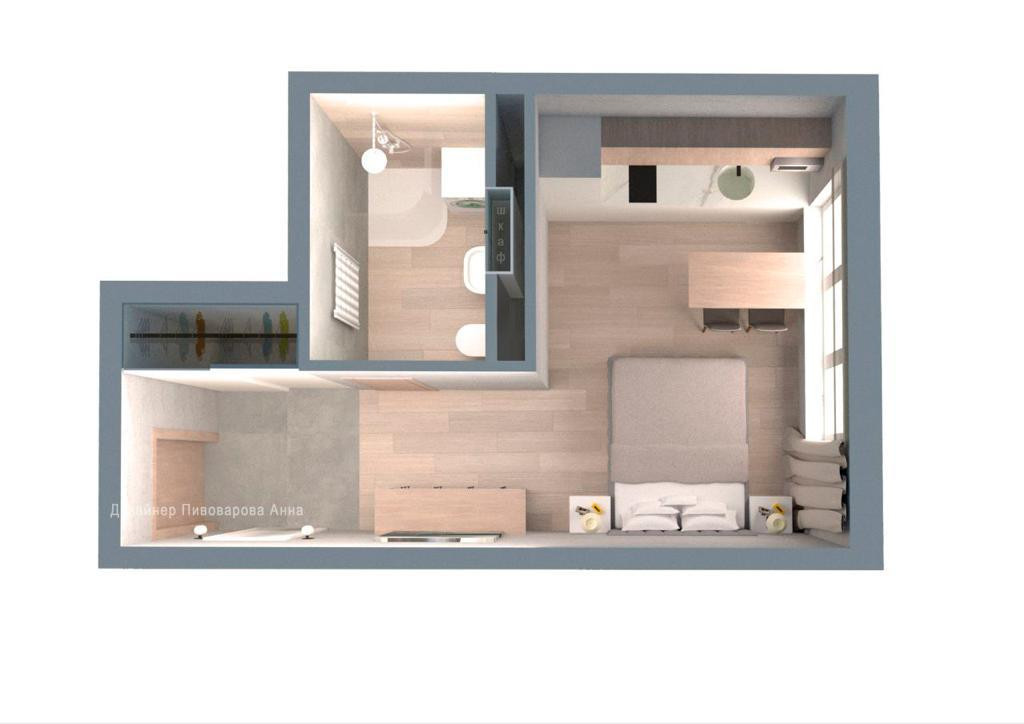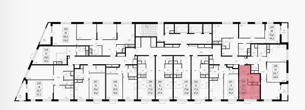 Квартира располагается в корпусе 1 на 3 этаже.  Квартира сдается без отделки.  Проектная площадь 23.3 м2.