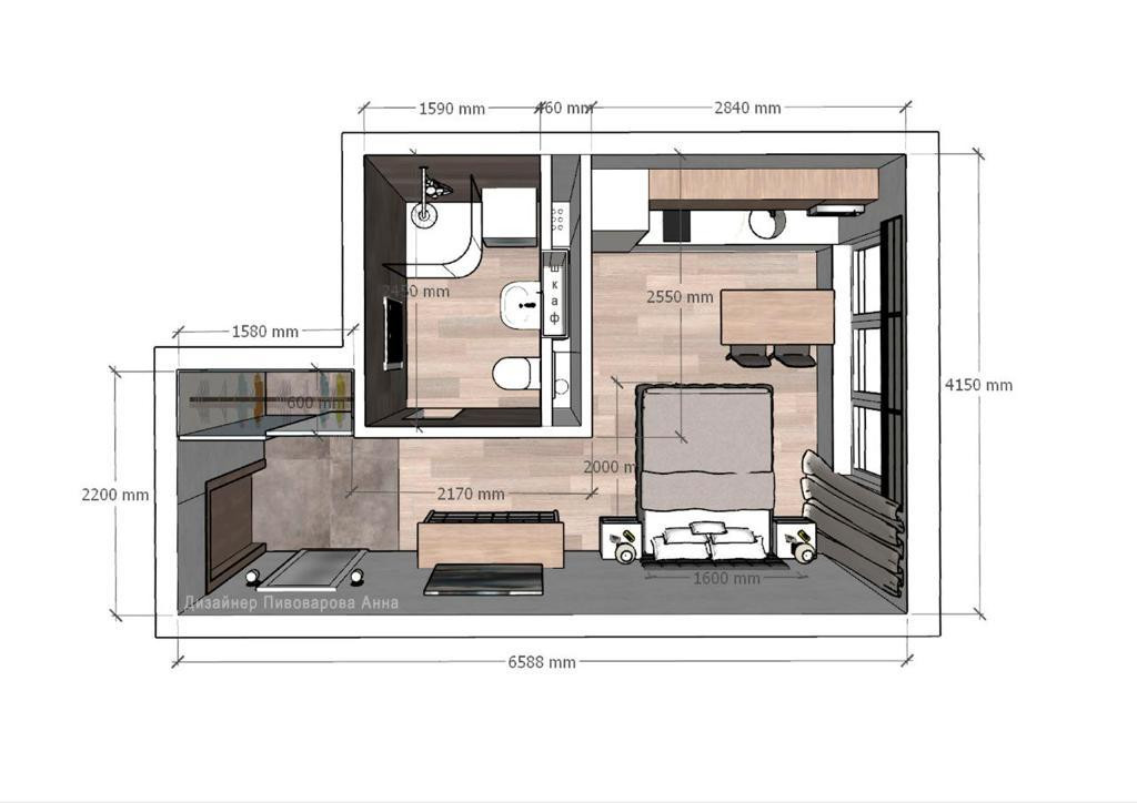 Площадь кухни 3 м2