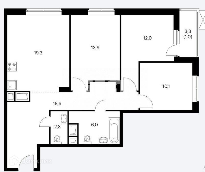 В продаже 3к квартира 85,3 м² с просторной кухней 19,3 м² , на 12 этаже . Три изолированные комнаты (13,9/12,4/10,1), два полноценных санузла, большая прихожая.