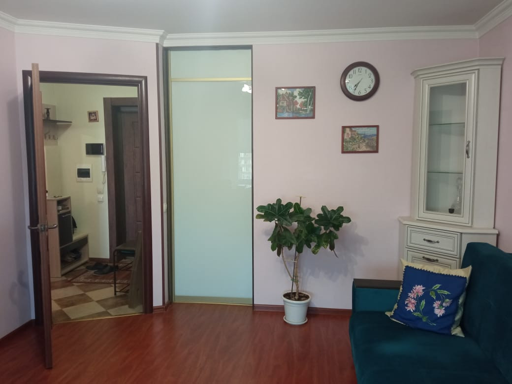 Продаю 1-комн квартиру на 12/12-панельного теплого дома, 35,1/20,1/9,6, Балкон. Хорошее состояние. Окна во двор. полы-плитка в коридоре (с подогревом) и с/узлах и паркетная доска, в комнате -кондиционер. Можно въехать и жить. 1 Взрослый собственник. В собственности менее 3-х лет. Свободная продажа.