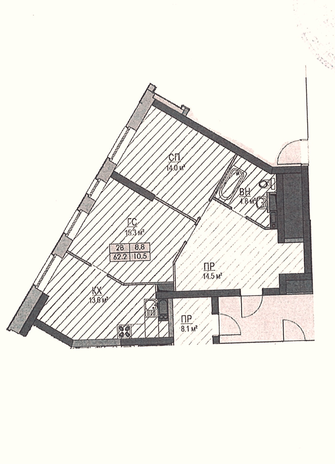 Общая площадь 62.2 м2