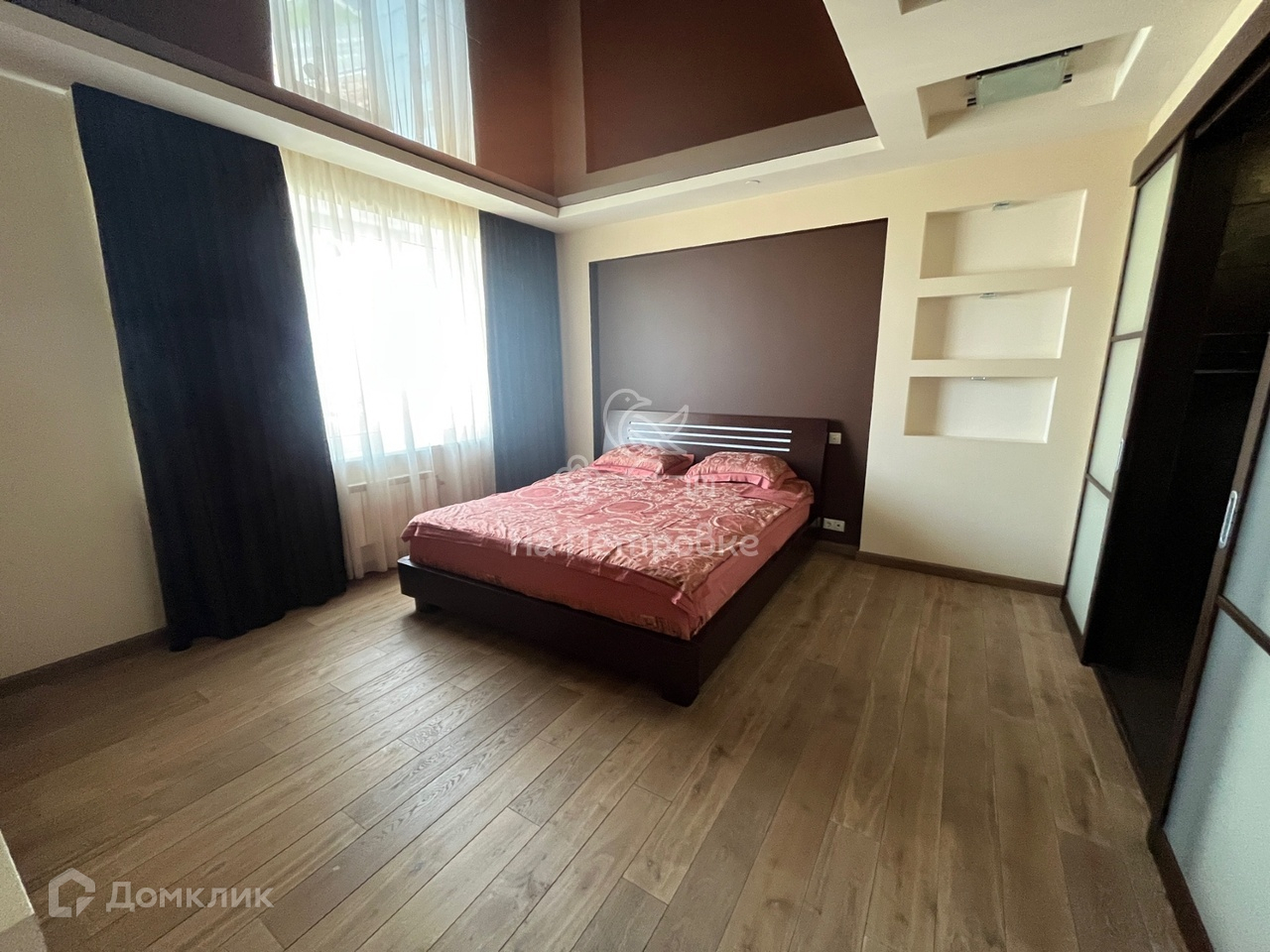 Кухня совмещена с просторной гостиной, три отдельные спальни, две гардеробные комнаты, два санузла. Использовались только натуральные и качественные материалы. Кухня укомплектована бытовой техникой, кондиционеры, теплые полы, домашний кинотеатр, сигнализация, бойлер.