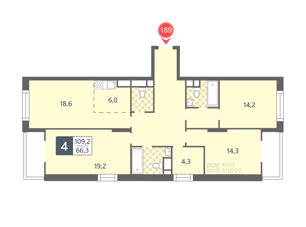 Общая площадь 109.2 м2