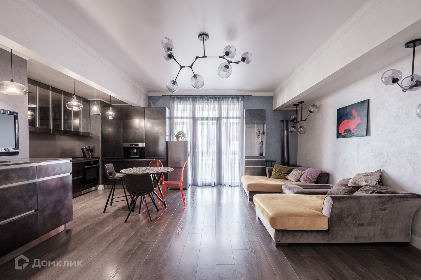 Квартира светлая и удобная функционально: просторная кухня-гостиная, детская комната, спальня, кабинет, две гардеробные и огромная ванная комната (и душевая кабина, и ванная), распашонка (выходит на две стороны света).