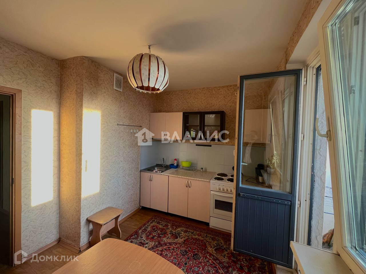 Кухня просторная с балконом и красивым видом на закат в вечернее время.