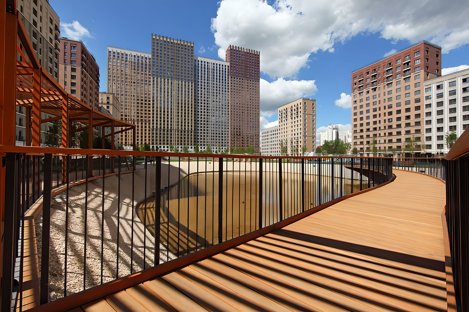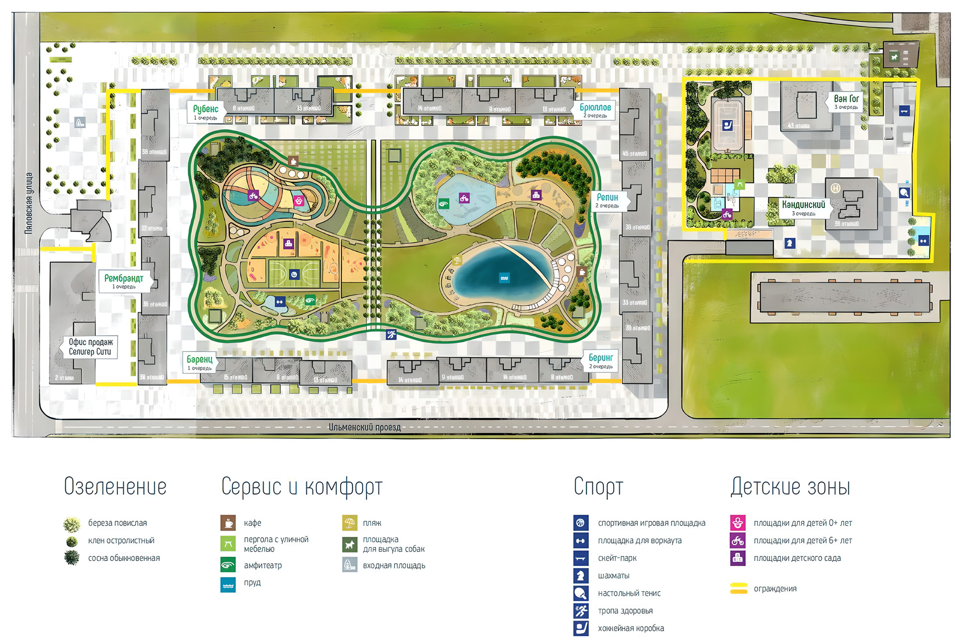 - Внутри застройки собственная парковая зона с прудом
