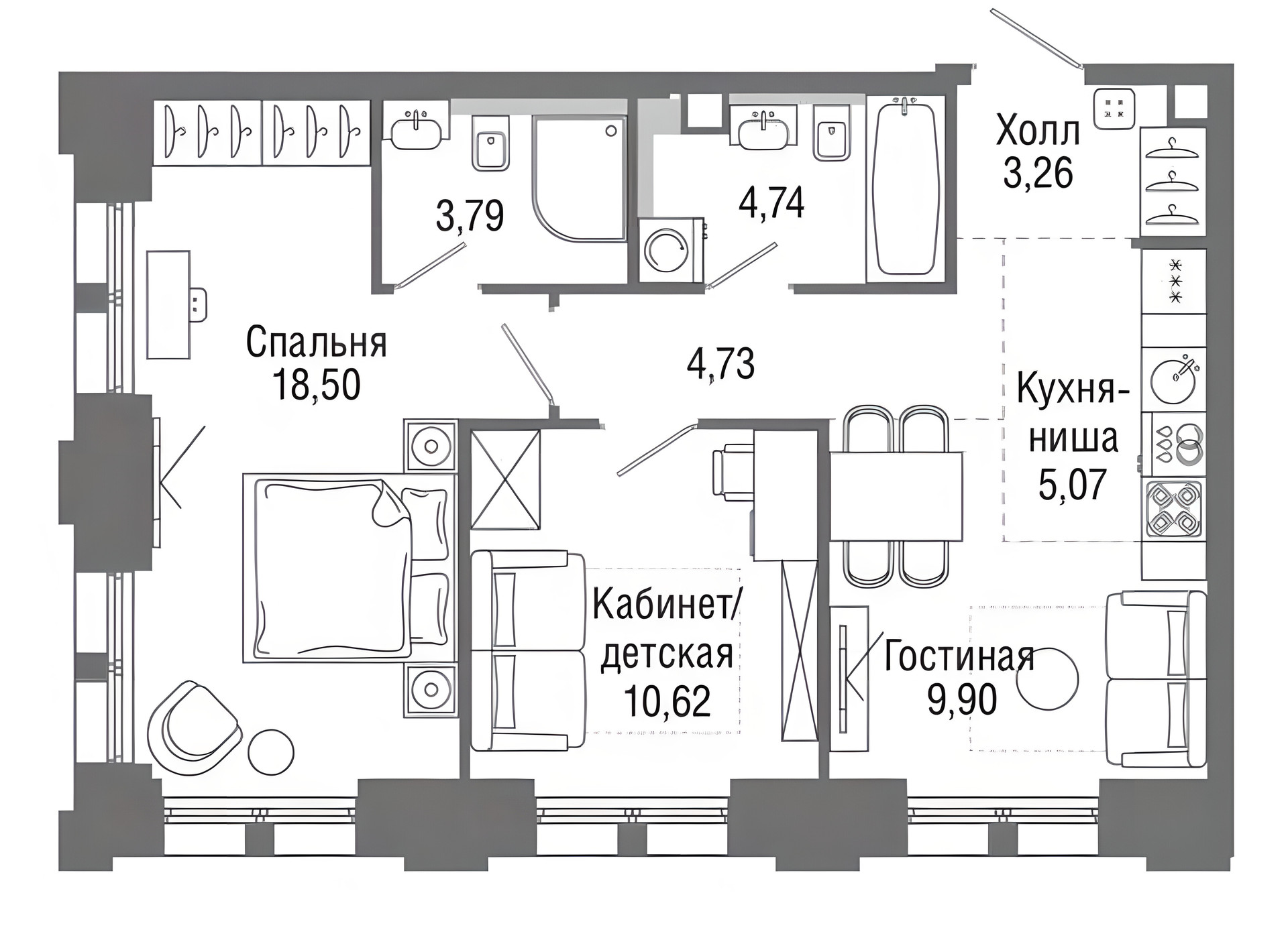 - Есть ниша под просторный гардероб
