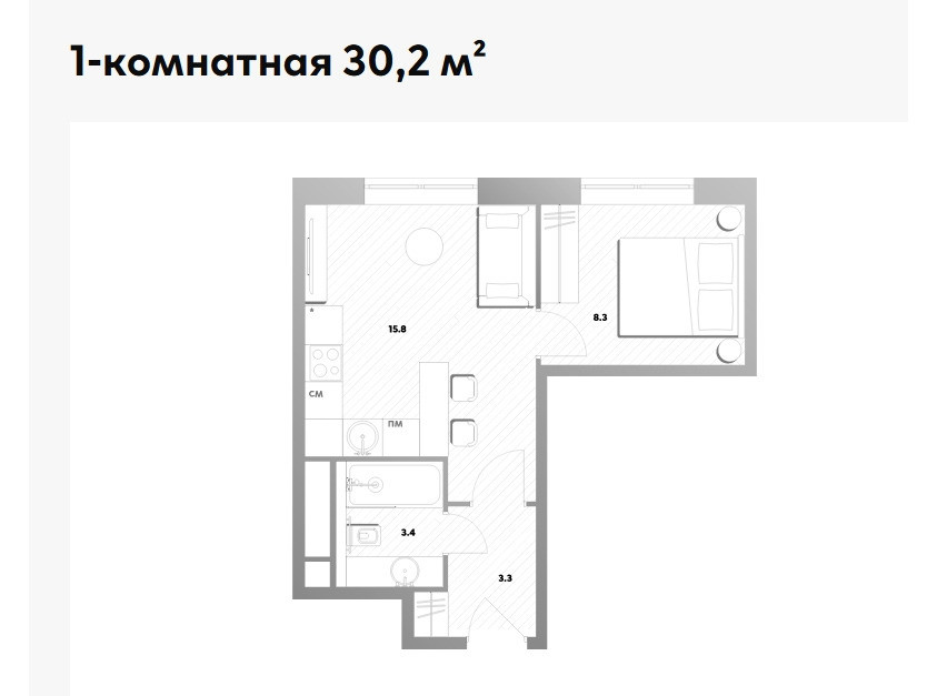Общая площадь 30.1 м2