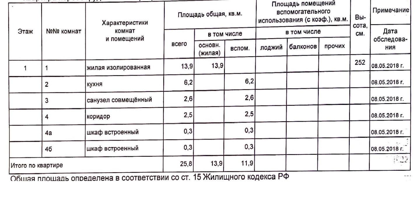 Общая площадь 26 м2